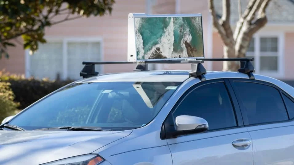 Cartop displays are digital devices that go on top of your car that display advertising.